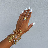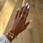 Bague ajustable en acier inoxydable. Charms plaqués or. Il est recommandé d'éviter tout contact avec l'eau et de sécher délicatement les charms après exposition à l'humidité.