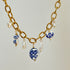 Chaîne ajustable en acier inoxydable. Charms plaqués or. Il est recommandé d'éviter tout contact avec l'eau et de sécher délicatement les charms après exposition à l'humidité.