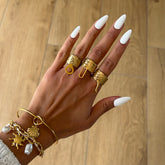 Bague ajustable en acier inoxydable. Charms plaqués or. Il est recommandé d'éviter tout contact avec l'eau et de sécher délicatement les charms après exposition à l'humidité.