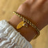 Bracelet ajustable en acier inoxydable. Charms plaqués or. Il est recommandé d'éviter tout contact avec l'eau et de sécher délicatement les charms après exposition à l'humidité.